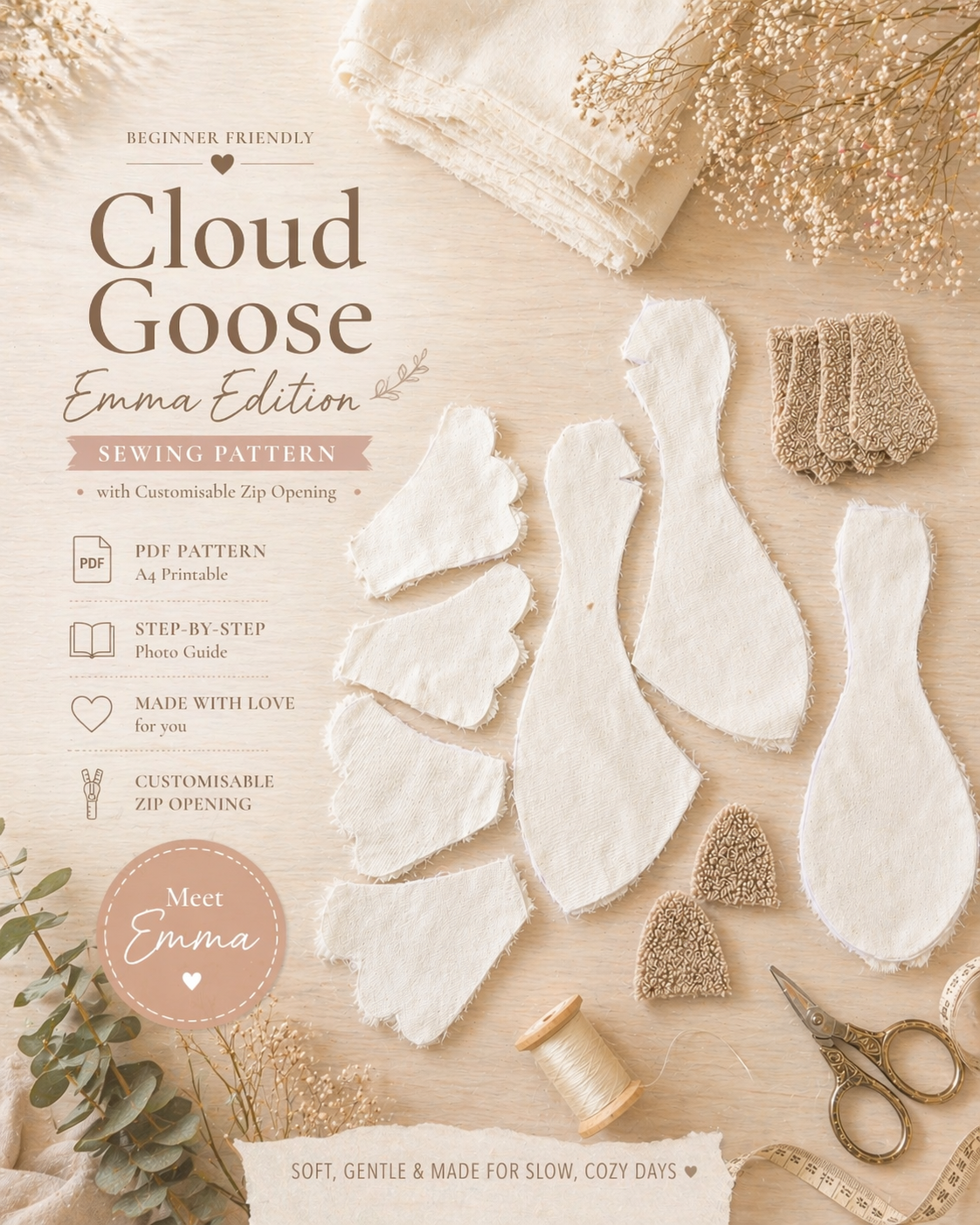 Snuggle Goose Sewing Pattern | Digital Download | Plush Goose PDF Pattern | A4 Printable