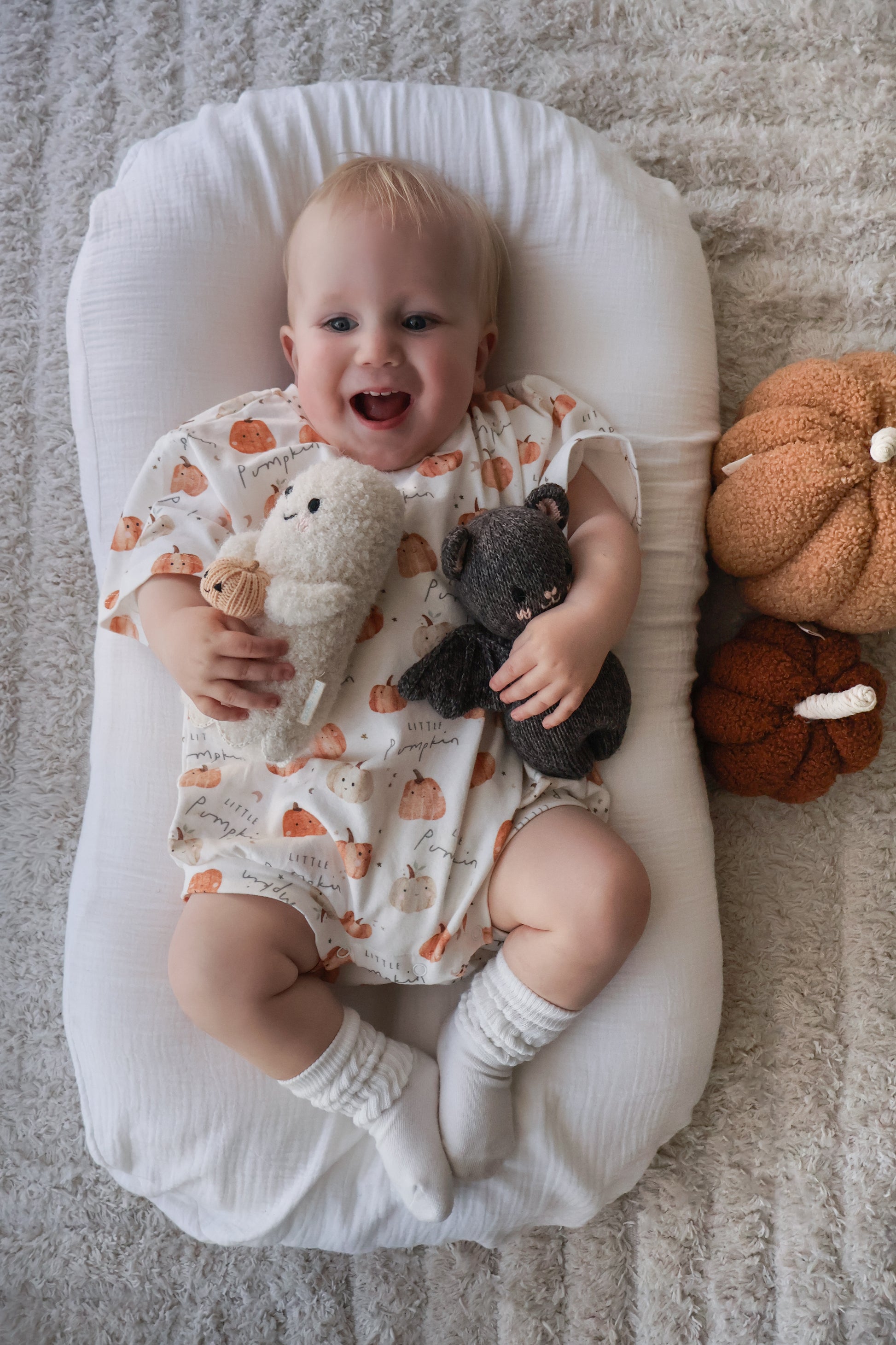 Our boucle pumpkins are among the top Halloween picks in our collection, offered in both large and small sizes to suit your preference. Available in a full range of colors, they can effortlessly coordinate with your seasonal decorations. Each pumpkin is thoughtfully handcrafted by Emily using soft teddy fleece fabric, making them ideal for adding a cozy, festive touch to your home. Please note that, as each piece is handmade, slight variations from the images may occur.