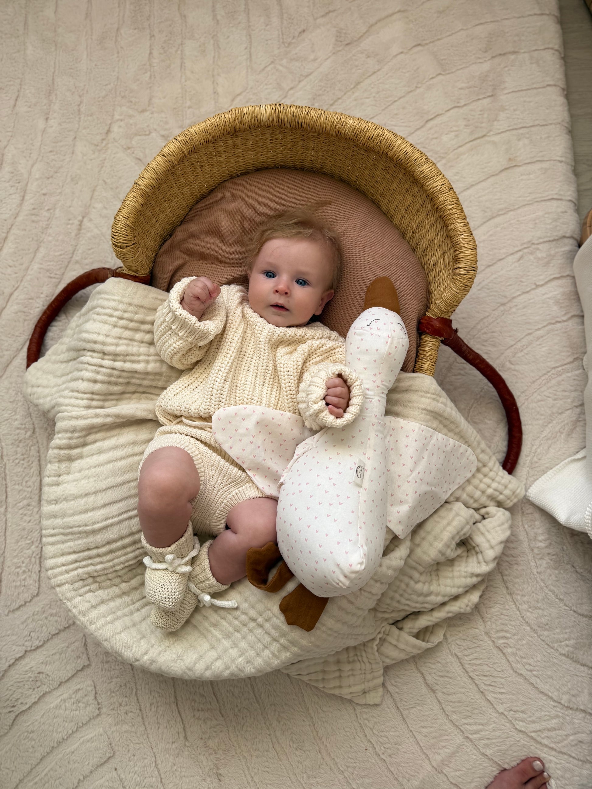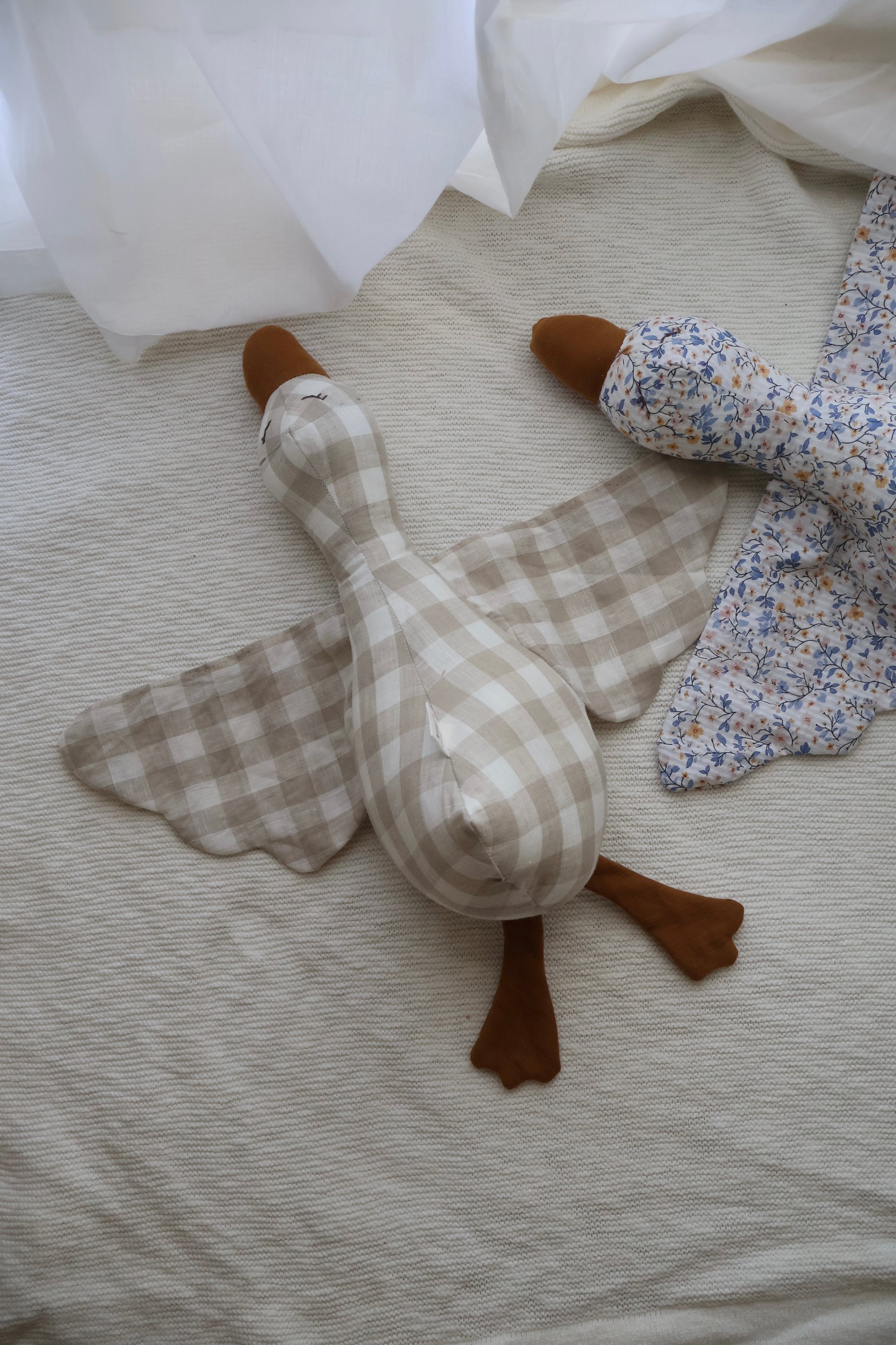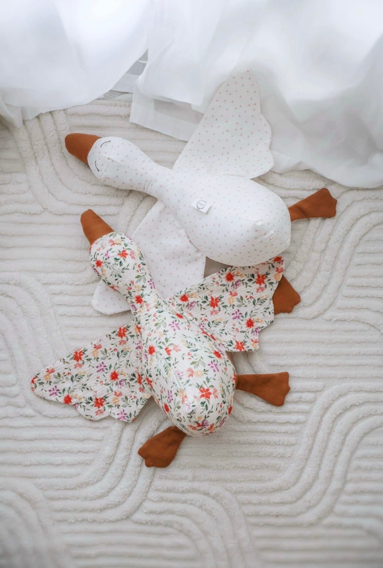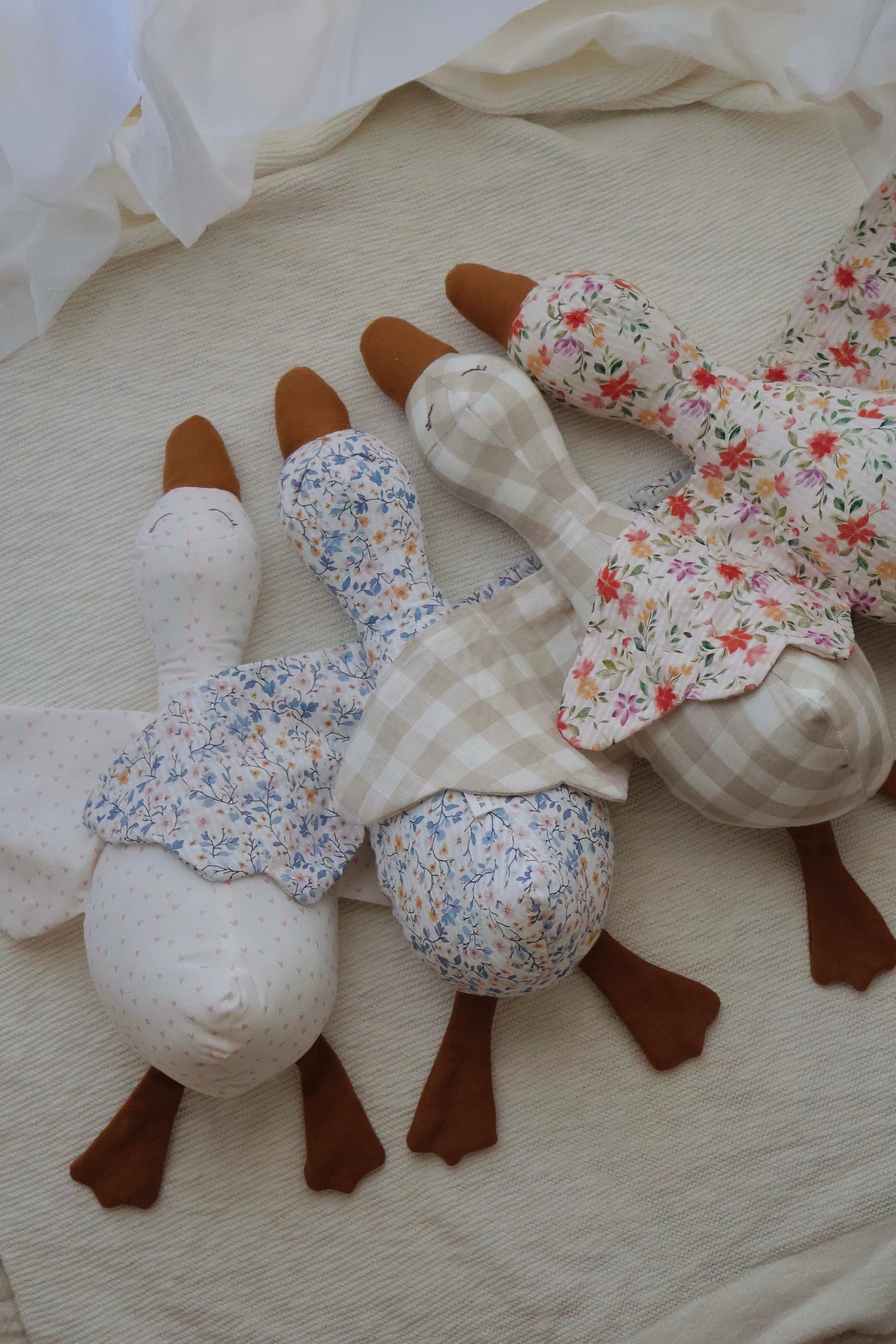 Each duck features delicate floral and gingham fabrics, soft earthy tones, and a timeless design that feels both nostalgic and sweet. Created to be cuddled, carried, and loved, these ducks are perfect for nursery styling, gentle play, or as a meaningful keepsake for your little one.